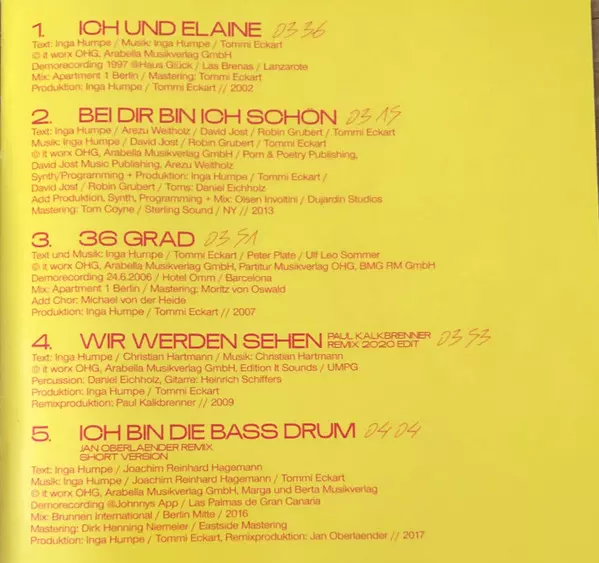 Mastered By Tommi Eckart | Music By Tommi Eckart | Music By, Lyrics By Inga Humpe | Producer Inga Humpe, Tommi Eckart