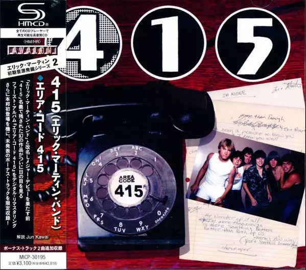 415: Area Code 415 Wersja na CD w standardowe wydanie. Ta konkretna edycja została wydana w USA w wydawnictwie Metallic Blue Records dnia 23. sierpnia 2024. Album sięga do gatunku Rock, Hard Rock, Classic Rock i AOR.
