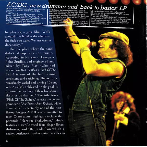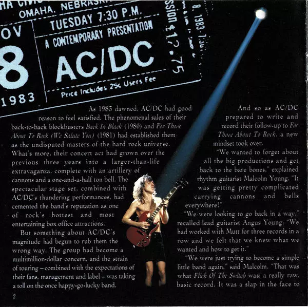 Mało kto wierzył, że AC/DC otrząśnie się z szoku po śmierci wokalisty Bona Scotta w 1980 roku. Jednak nowy wokalista Brian Johnson udowodnił swoją wartość i w 1983 roku australijski zespół powrócił do dawnej formy z albumem "Flick Of The Switch". To, co wydobyło się z głośników, było bardziej surowe i nieskazitelne niż prawie każdy inny longplay...