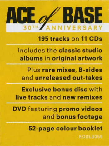 Ace Of Base: All That She Wants: The Classic Collection DLX Wersja na 11CD/DVD/Zestaw pudełkowy w deluxe wydanie. Ta konkretna edycja została wydana w Europa w wydawnictwie Edsel Records dnia 10. lipca 2020. Album można sklasyfikować jako gatunek Pop.