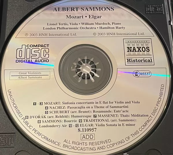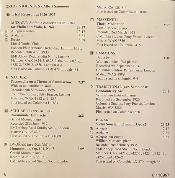 | Wykonawca | Wolfgang Amadeus Mozart | Sir Edward Elgar | Albert Sammons |
