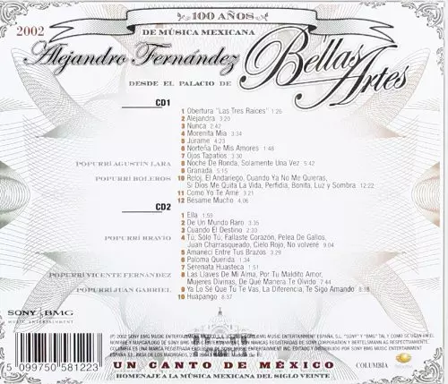 | Tytuł | Un Canto De México - Homenaje A La Música Mexicana Del Siglo Veinte (Alejandro Fernández Desde El Palacio De Bellas Artes - En Vivo - 2002) |