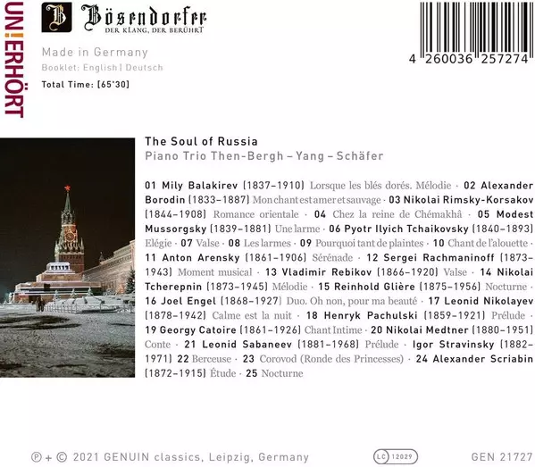 Alexander Krein: The Soul Of Russia Wersja na CD w standardowe wydanie. Ta konkretna edycja została wydana w Niemcy w wydawnictwie GENUIN dnia 8. stycznia 2021. Album sięga do gatunku Muzyka klasyczna, Modernism i Romantyzm.