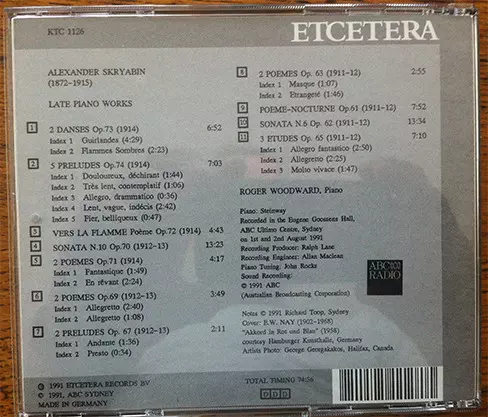 | Wykonawca | Roger Woodward | Alexander Scriabin |