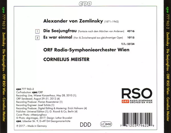 | Wykonawca | Alexander Von Zemlinsky | ORF Radio-Symphonieorchester Wien | Cornelius Meister |