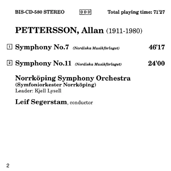 | Wykonawca | Norrköping Symphony Orchestra | Allan Pettersson | Leif Segerstam |
