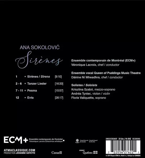 | Wykonawca | Ensemble Contemporain De Montréal | Véronique Lacroix | Ana Sokolovic | Ensemble Vocal Queen of Puddings Music Theatre | Dáirine Ní Mheadhra |