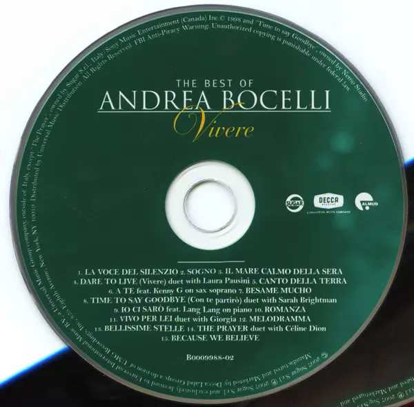 | Tytuł | The Best Of Andrea Bocelli: Vivere |