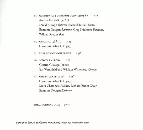 Baritone Vocals Eamonn Dougan | Composed By Andrea Gabrieli | Tenor Vocals Richard Butler (3) | Vocals [Falsetto] Mark Chambers (3)