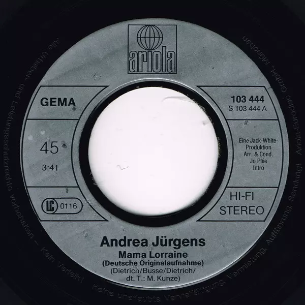 | Więcej informacji | 45 RPM Single Ariola (Germany) Stereo |