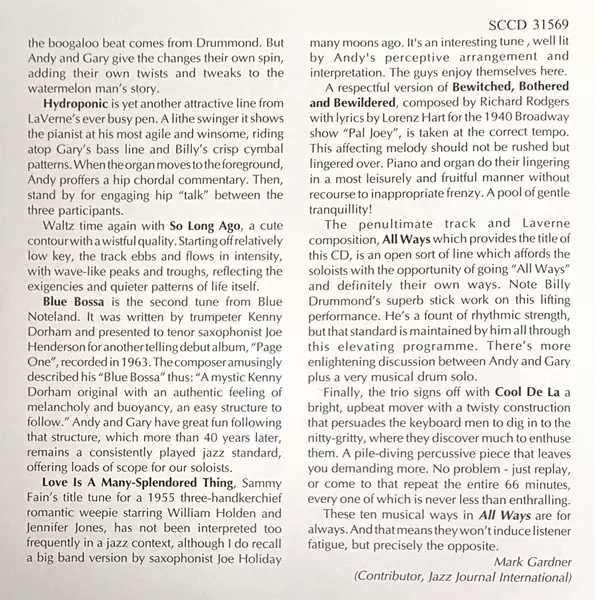 Wykonawca | Andy Laverne | Gary Versace | Billy Drummond |