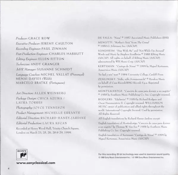 Angelika Kirchschlager: When Night Falls Wersja na CD w standardowe wydanie. Ta konkretna edycja została wydana w Europa w wydawnictwie Sony Classical dnia 2. listopada 1999. Album sięga do gatunku Muzyka klasyczna, Modernism, Romantyzm i Contemporary classical.