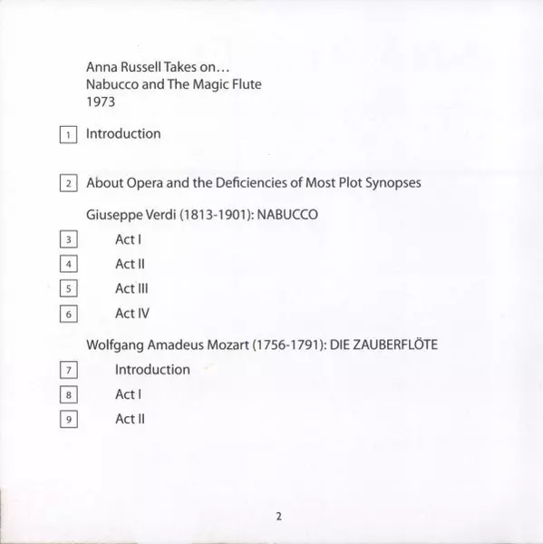 | Tytuł | Anna Russell Takes On Nabucco & The Magic Flute |