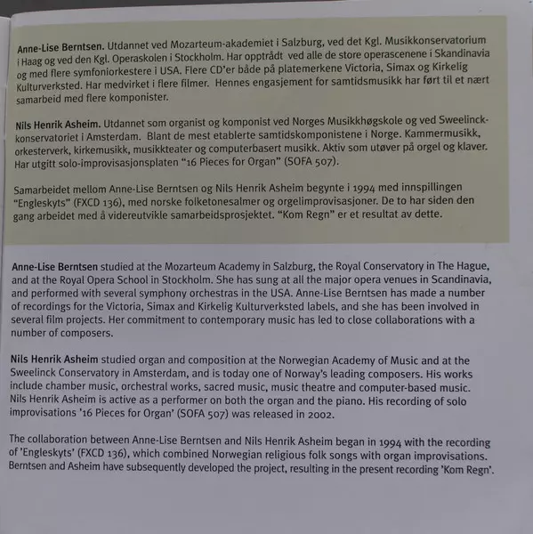 | Wykonawca | Nils Henrik Asheim | Anne-Lise Berntsen |