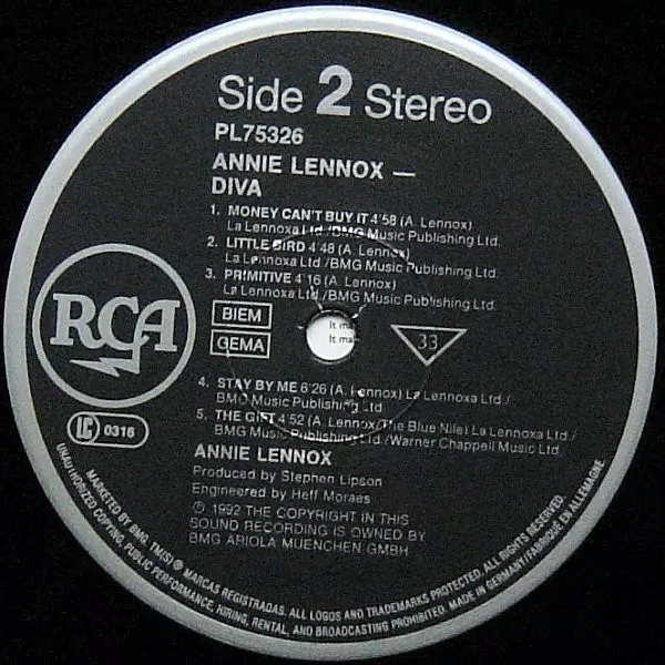 Solowy album Diva, wyprodukowany przez Stephena Lipsona i napisany przez Lennoxa, został po raz pierwszy wydany w 1992 roku. W Wielkiej Brytanii album pokrył się poczwórną platyną za ponad 1,2 miliona sprzedanych egzemplarzy i zadebiutował na pierwszym miejscu brytyjskiej listy albumów. Diva stała się siódmym najlepiej sprzedającym się albumem w...