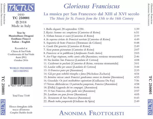 Tytuł | Gloriosus Franciscus: La Music San Francesco Dal XIII Al XVI Secolo |