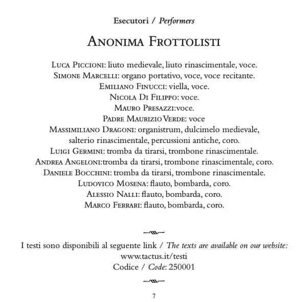 Wykonawca | Anonima Frottolisti |