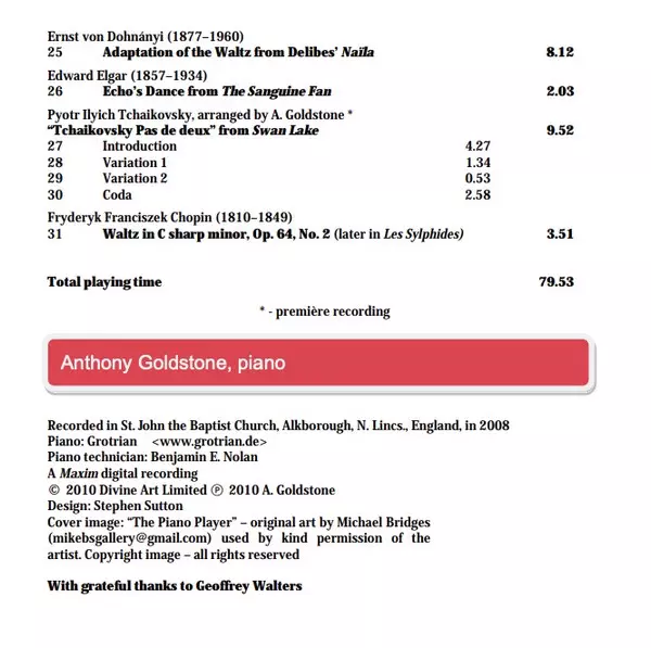 | 25 | Ernst von Dohnányi: Adaptation Of The Waltz From Delibes’ Naila | 8:12 min | |