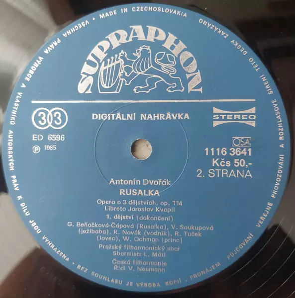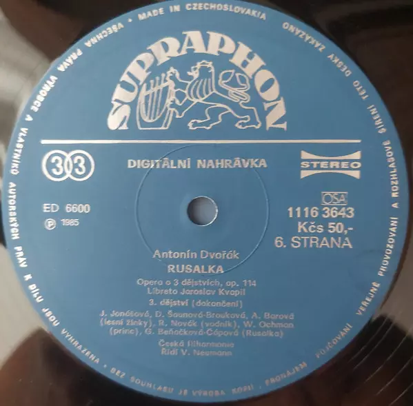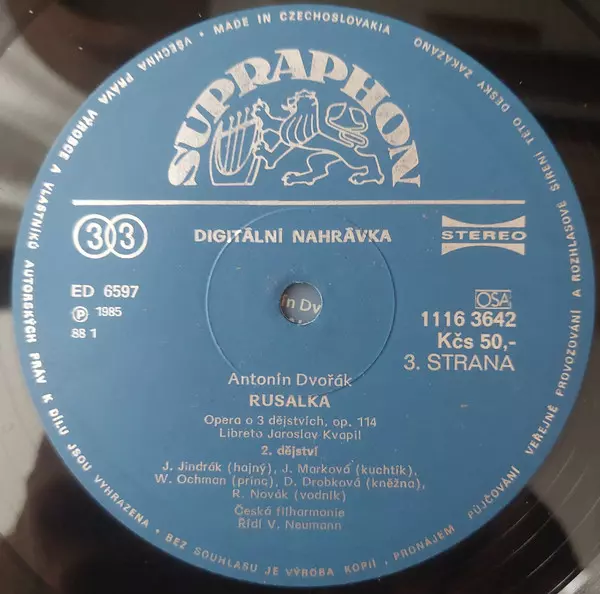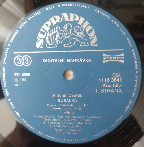 Antonín Dvořák: Rusalka Wersja na winylu 3LP/Zestaw pudełkowy w standardowe wydanie. Ta konkretna edycja została wydana w Czechosłowacja w wydawnictwie Supraphon roku 1988.