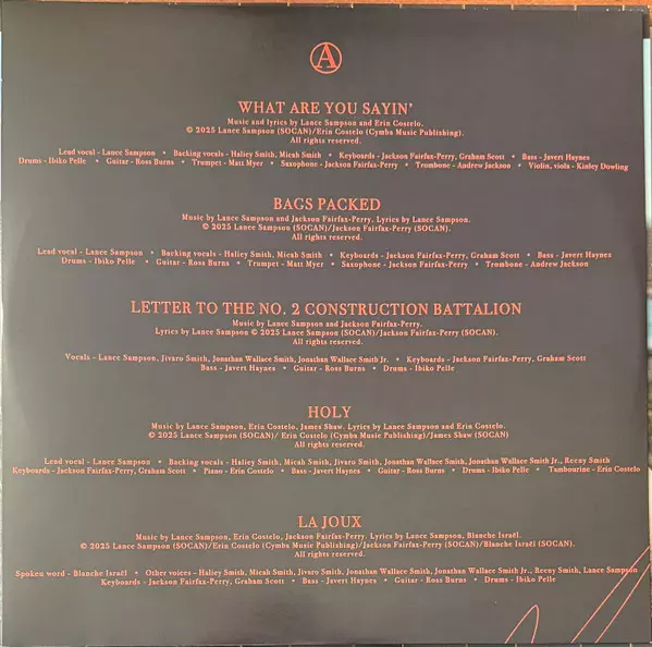 Backing Vocals Mahalia Smith, Micah Smith (6) | Bass Javert Haynes | Drums, Percussion Ibiko Pelle | Guitar Ross Burns | Keyboards Graham Scott (4), Jackson Fairfax-Perry | Lead Vocals Lance Sampson | Music By, Lyrics By Erin Costelo, Jackson Fairfax-Perry, Lance Sampson | Violin, Viola Kinley Dowling | Voice [Spoken Word] Carolyn Fowler