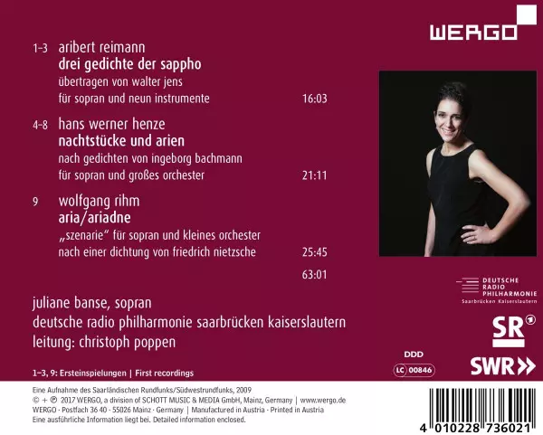 Wykonawca | Hans Werner Henze | Wolfgang Rihm | Aribert Reimann | Deutsche Radio Philharmonie Saarbrücken Kaiserslautern | Juliane Banse | Christoph Poppen |