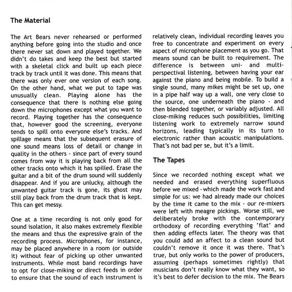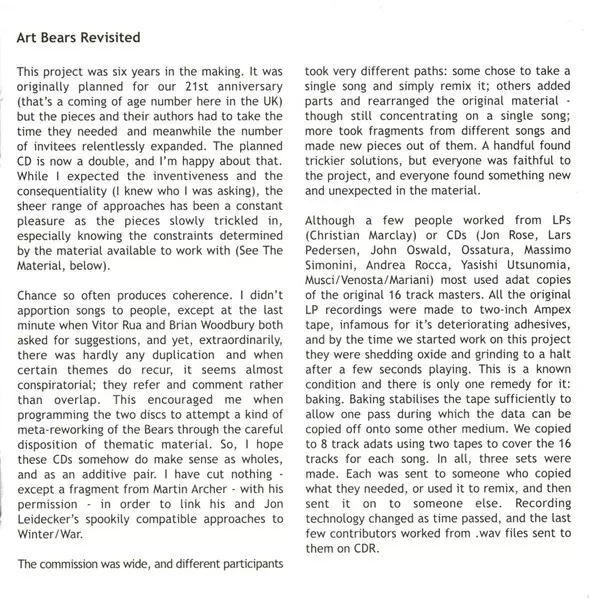 | Wykonawca | Art Bears |