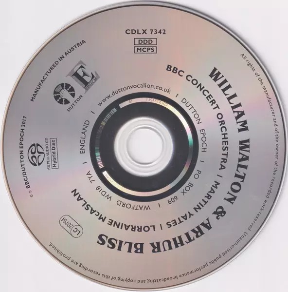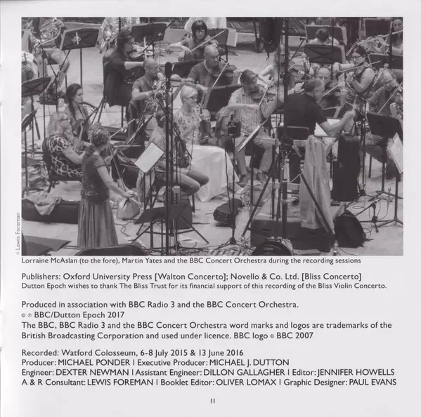 | Wykonawca | Sir William Walton | Arthur Bliss | BBC Concert Orchestra | Martin Yates | Lorraine McAslan |