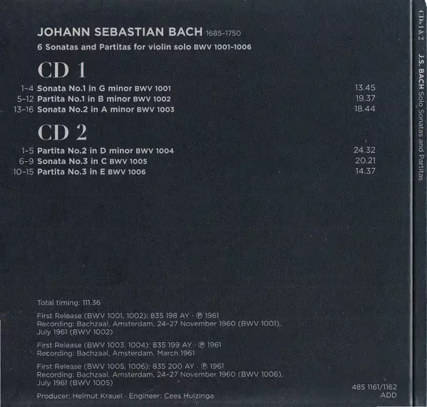 Composed By Johann Sebastian Bach | Conductor Arpad Gérecz | Orchestra Les Solistes Romands | Violin Herman Krebbers