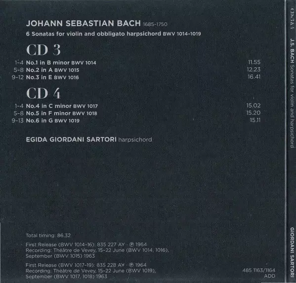 J.S. Bach - Sonatas For Violin And Harpsichord