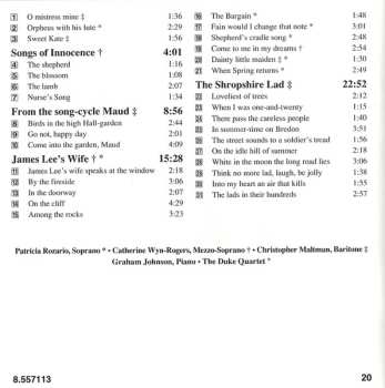 | Wykonawca | Christopher Maltman | Catherine Wyn-Rogers | Graham Johnson | Patricia Rozario | Sir Arthur Somervell | The Duke Quartet |