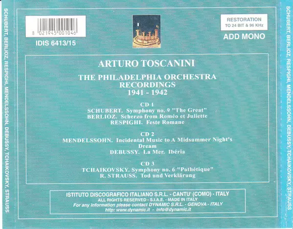 Tytuł | The Philadelphia Orchestra Recordings - Schubert, Mendelssohn, Berlioz, Tchaikovsky, Debussy, Strauss, Respighi - Recordings 1941-1942 |