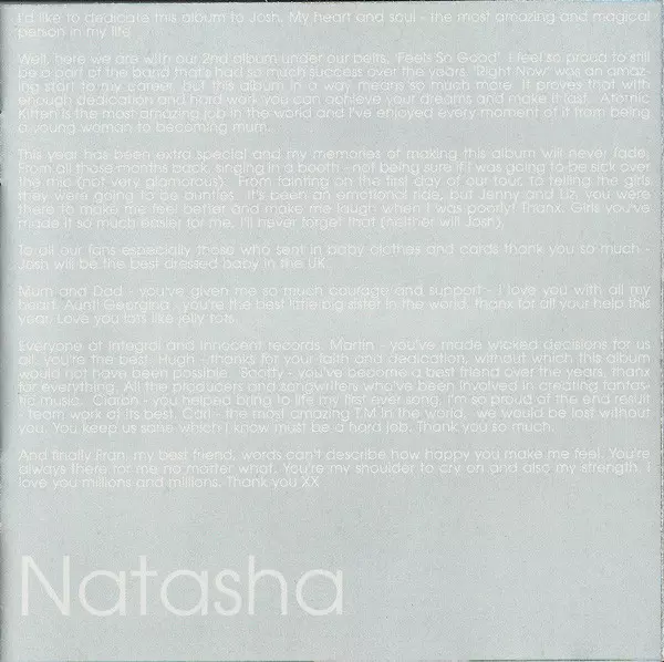 Atomic Kitten: Feels So Good Wersja na CD w standardowe wydanie. Ta konkretna edycja została wydana w Europa w wydawnictwie Innocent we współpracy z Virgin roku 2002. Album sięga do gatunku Pop, Muzyka elektroniczna, Ballada, Dance-pop, Disco i Europop.