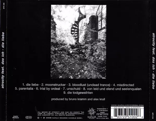 Atrocity: Die Liebe Wersja na CD w zremasterowane wydanie. Ta konkretna edycja została wydana w Europa i USA w wydawnictwie Napalm Records dnia 29. września 2009. Album sięga do gatunku Rock, Muzyka elektroniczna, Industrial, Heavy Metal i Electro.