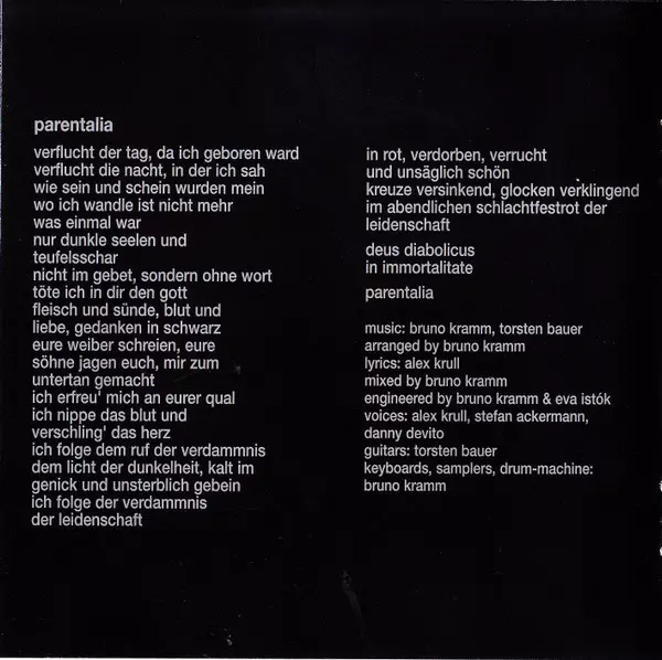 Arranged By Thorsten Bauer | Arranged By, Mixed By, Vocals Alexander Krull | Bass Chris Lukhaup | Engineer Nils Röhl | Guitar Mathias Röderer | Lyrics By, Vocals Stefan Ackermann | Music By, Mixed By, Keyboards, Sampler, Engineer Bruno Kramm