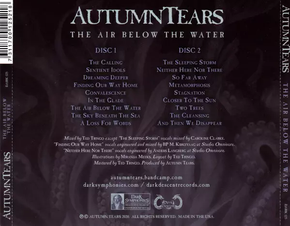 Autumn Tears: The Air Below The Water LTD Wersja na 2CD w ograniczone wydanie. Ta konkretna edycja została wydana w USA w wydawnictwie Dark Symphonies dnia 28. lutego 2020. Album sięga do gatunku Muzyka klasyczna i Neo-Classical.