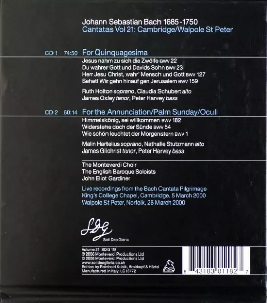 | Tytuł | Cantatas Vol. 21: Cambridge / Walpole St Peter |