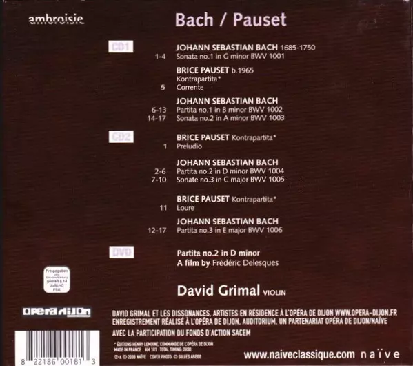 | Wykonawca | Johann Sebastian Bach | Brice Pauset | David Grimal |