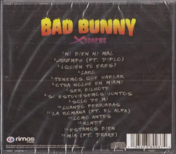 Bad Bunny: X 100pre Wersja na CD w standardowe wydanie. Ta konkretna edycja została wydana w USA w wydawnictwie Rimas Music (3) dnia 20. września 2019. Album sięga do gatunku Pop, Muzyka latynoska, Hip Hop, Trap, Reggaeton i Latin Pop.