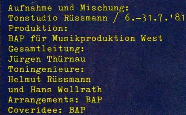 BAP is a renowned rock band from Cologne, Germany, formed in 1976 by Wolfgang Niedecken and Hans Heres. Over the years, BAP has become one of the most successful rock acts in Germany, with their songs primarily performed in Kölsch, the local dialect of Cologne. Their music is known...
