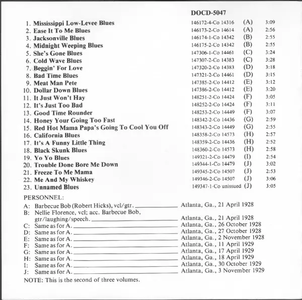 | 23 | Barbecue Bob: Unnamed Blues | 3:05 min |