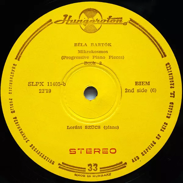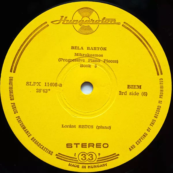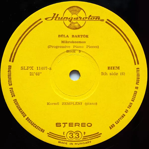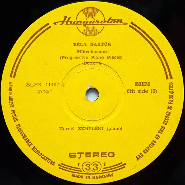 Béla Bartók: Mikrokosmos (Progressive Piano Pieces) Vol. I - VI Wersja na winylu 3LP/Zestaw pudełkowy w standardowe wydanie. Ta konkretna edycja została wydana w Węgry w wydawnictwie Hungaroton roku 1970. Album sięga do gatunku Muzyka klasyczna i Modernism.