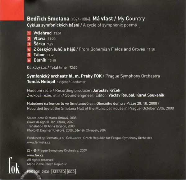 | Wykonawca | Bedřich Smetana | The Prague Symphony Orchestra | Tomáš Netopil |