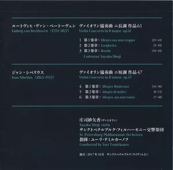 | Wykonawca | Ludwig van Beethoven | Jean Sibelius | St. Petersburg Philharmonic Orchestra | Yuri Temirkanov | Sayaka Shoji |