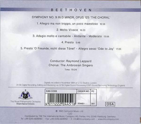 | Wykonawca | Ludwig van Beethoven | The Ambrosian Singers | Royal Philharmonic Orchestra | Raymond Leppard |