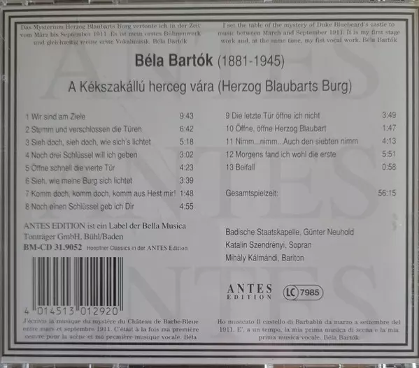 | Wykonawca | Béla Bartók | Badische Staatskapelle | Günter Neuhold | Katalin Szendrényi | Kálmándi Mihály |
