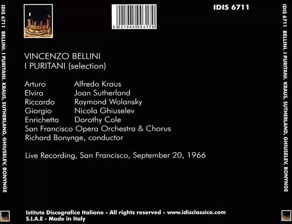 | Wykonawca | Nicolai Ghiaurov | Joan Sutherland | Vincenzo Bellini | Richard Bonynge | Alfredo Kraus | San Francisco Opera Orchestra | San Francisco Opera Chorus | Raymond Wolansky | Dorothy Cole |