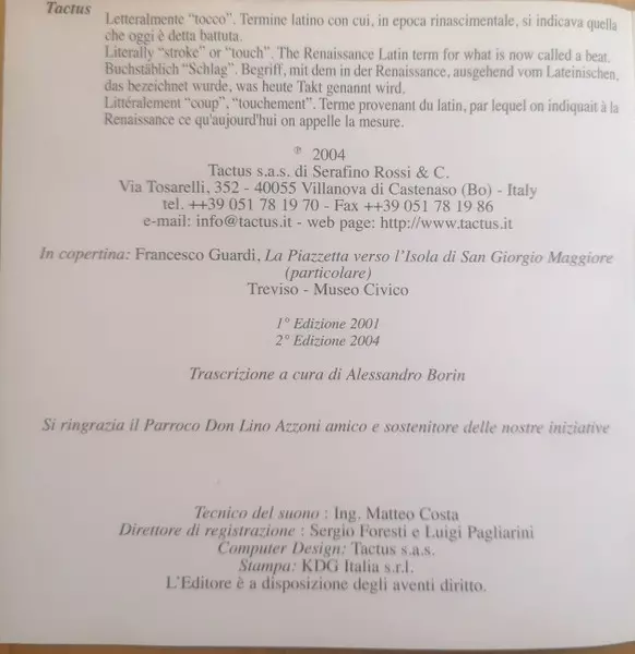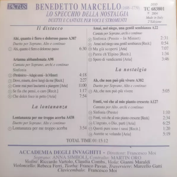 | Tytuł | Lo Specchio Della Nostalgia Duetti Cantate Per Voci E Stromenti |