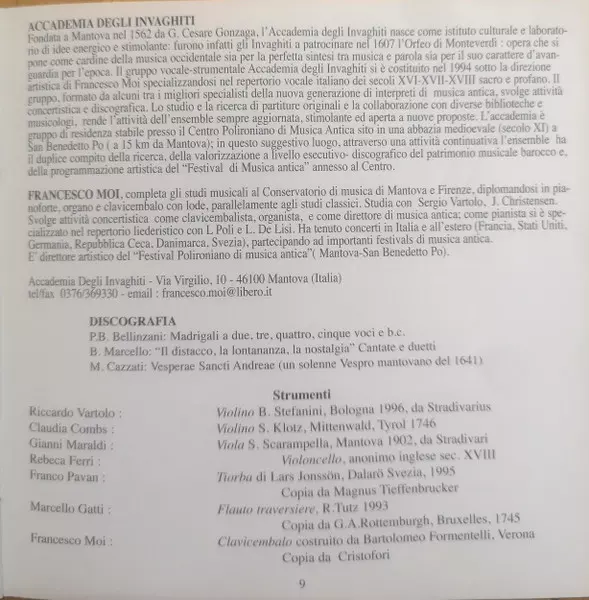 | Wykonawca | Benedetto Marcello | Accademia Degli Invaghiti | Francesco Moi |