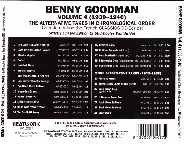 | Tytuł | Volume 4 1939-1940 (The Alternative Takes In Chronological Order) LTD |