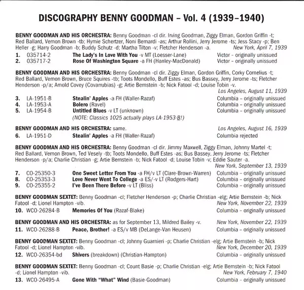 | 12 | Benny Goodman Sextet: Shivers (Breakdown) | 2:28 min | |